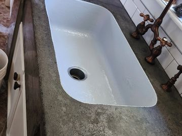 Concrete countertops, sinks, bar tops, and tables are cast at our shop and delivered after 2 weeks. Surfaces are polished, stained, and customized. Sinks are coated for the best performance.
